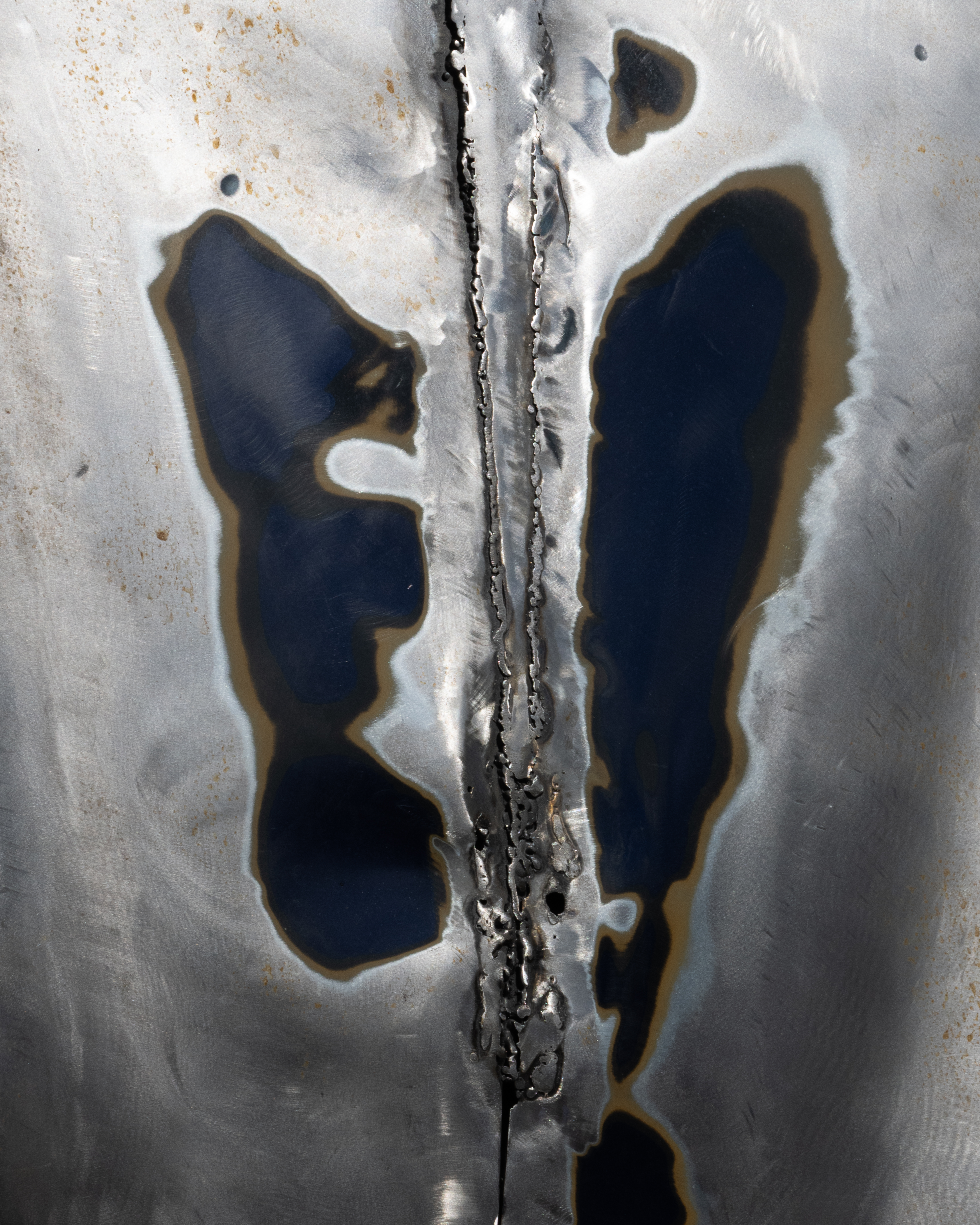 Anti corosion spray paint on metal road plate, placed in front of Cultural District