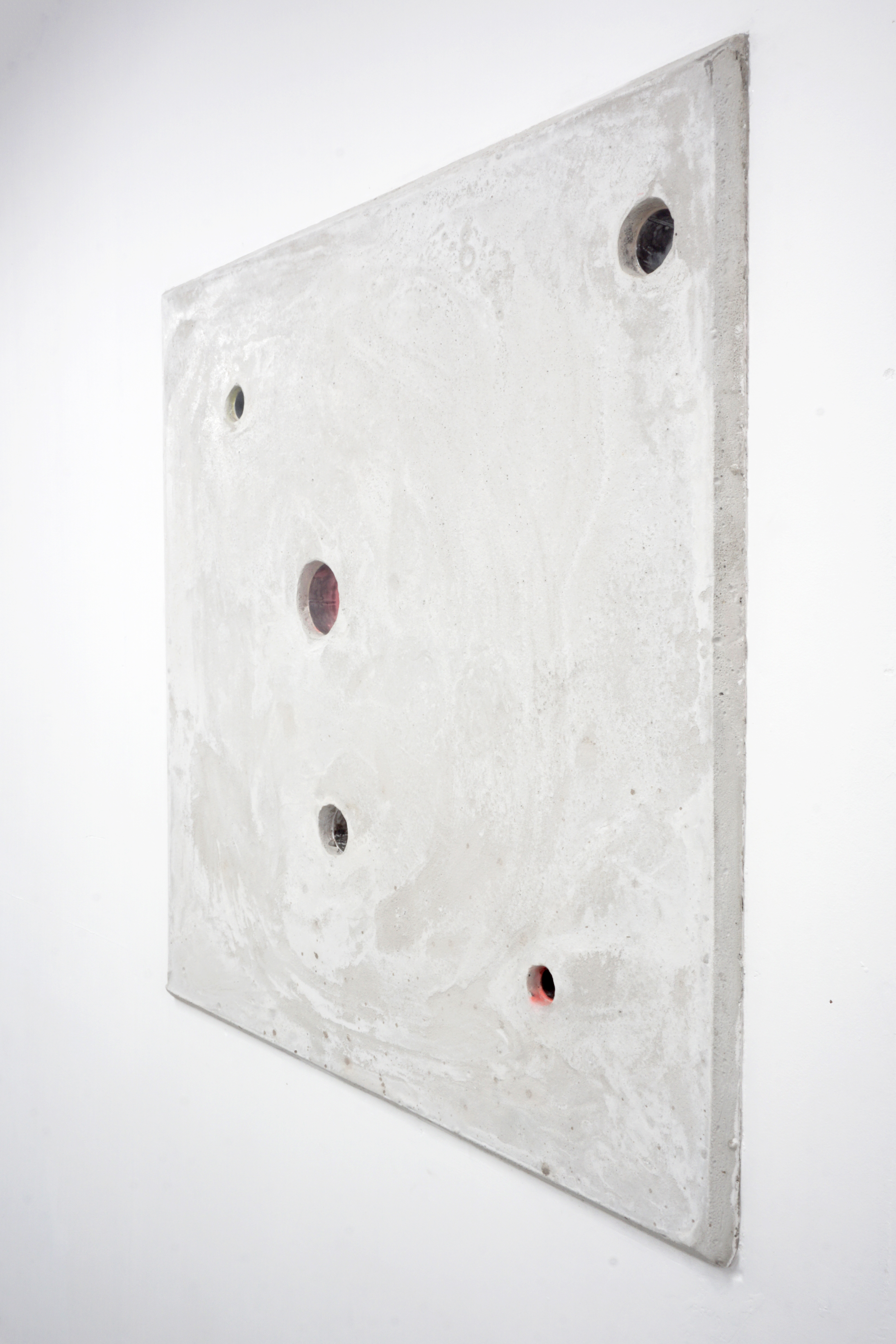 Floor paint, carriage bolts and steel rivets on canvas